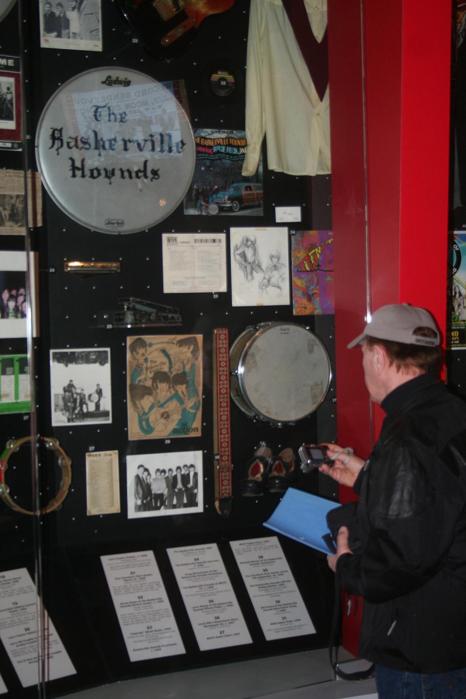 Lead guitarist Larry Meese views the exhibit of the band he helped to create.